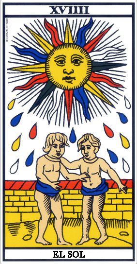 Cuando sale el sol en el tarot nos llena de orgullo el poder decirlo, está relacionada con la mejora en el amor, es una carta muy positiva y llena de momentos buenos que van a ocurrir, el tarot de Marsella es un tarot muy antiguo que siempre nos ha aportado esa seguridad de estar haciendo las cosas bien, por eso lo utilizamos tanto, el sol representa siempre el brillo, el crecimiento interior de una persona, el rejuvenecimiento de una persona, el amor, si preguntas si te vas a casar desde luego sería un claro SI eso parece, siempre asociada con los éxitos y que las cosas van a presentarse mucho mejor de lo que se pensaba, representa el astro que todo lo ilumina y se asocia a una mejora en todos los aspectos, al equilibrio y el bienestar y el amor de la persona a la que se le hace esa tirada del tarot, como en todas las cartas esto ocurre siempre si la carta está en posición normal y no está como una carta de tarot invertida.